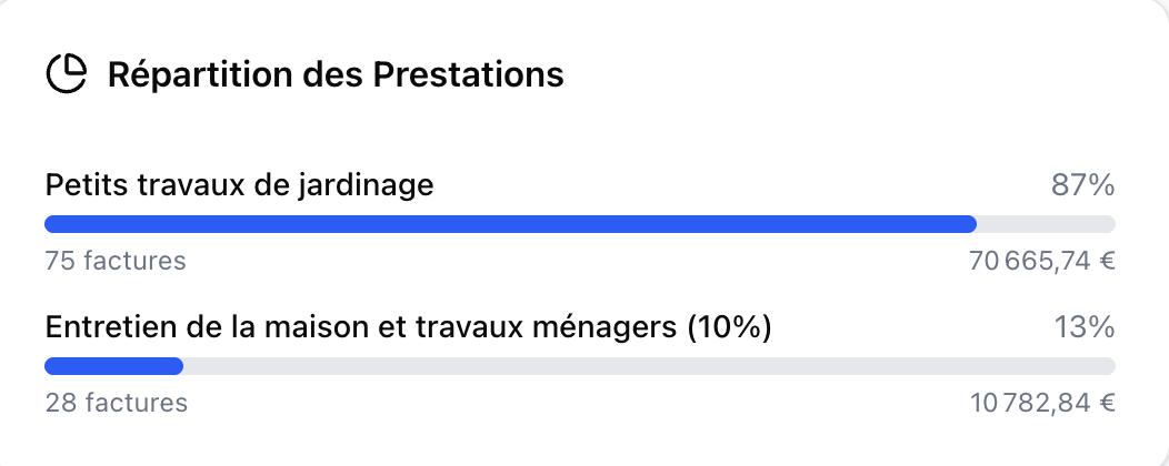 Visualisez en un instant quelles prestations génèrent le plus d’activité.