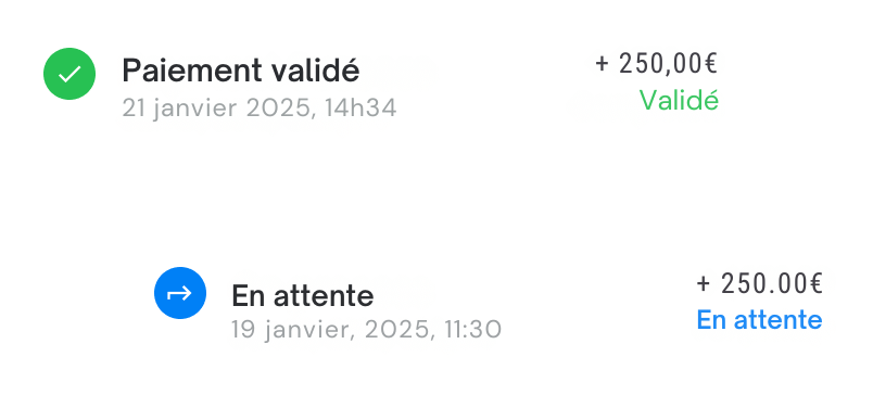 Gardez une visibilité complète sur les paiements validés, en attente ou en cours de traitement.